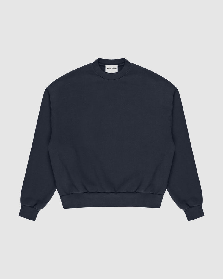 Dropped shoulders and a wide rib hem for a boxy, balanced silhouette. An oversized sweatshirt cropped to layer cleanly over the Fundamental T.